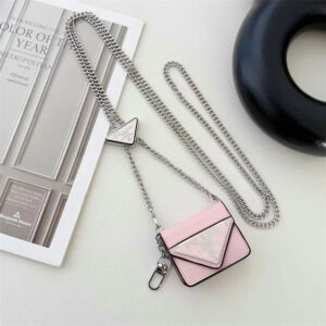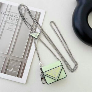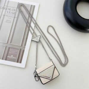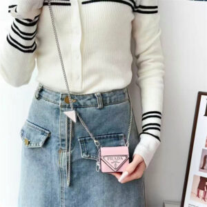 プラダのトライアングルロゴをあしらったレザー風airpodsケース。おしゃれで上品なデザインは男女を問わずお使いいただけます。チェーンストラップが付いているので、落下・紛失防止、持ち運びにも便利でおすすめの一品です。トレンドに敏感な方には絶対に見逃さないでね!