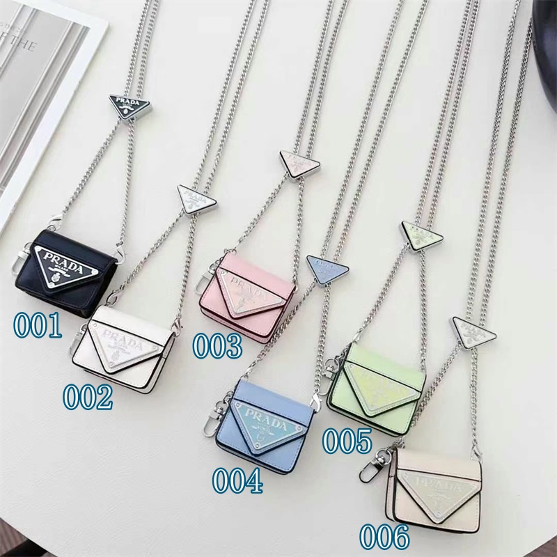 プラダ airpods4ケース ハイブランド チェーン prada airpods proケース 三角プレートレザー エアポッツ3 ケース ブランド おしゃれ airpods pro 2 ケース airpods ケース おしゃれ
